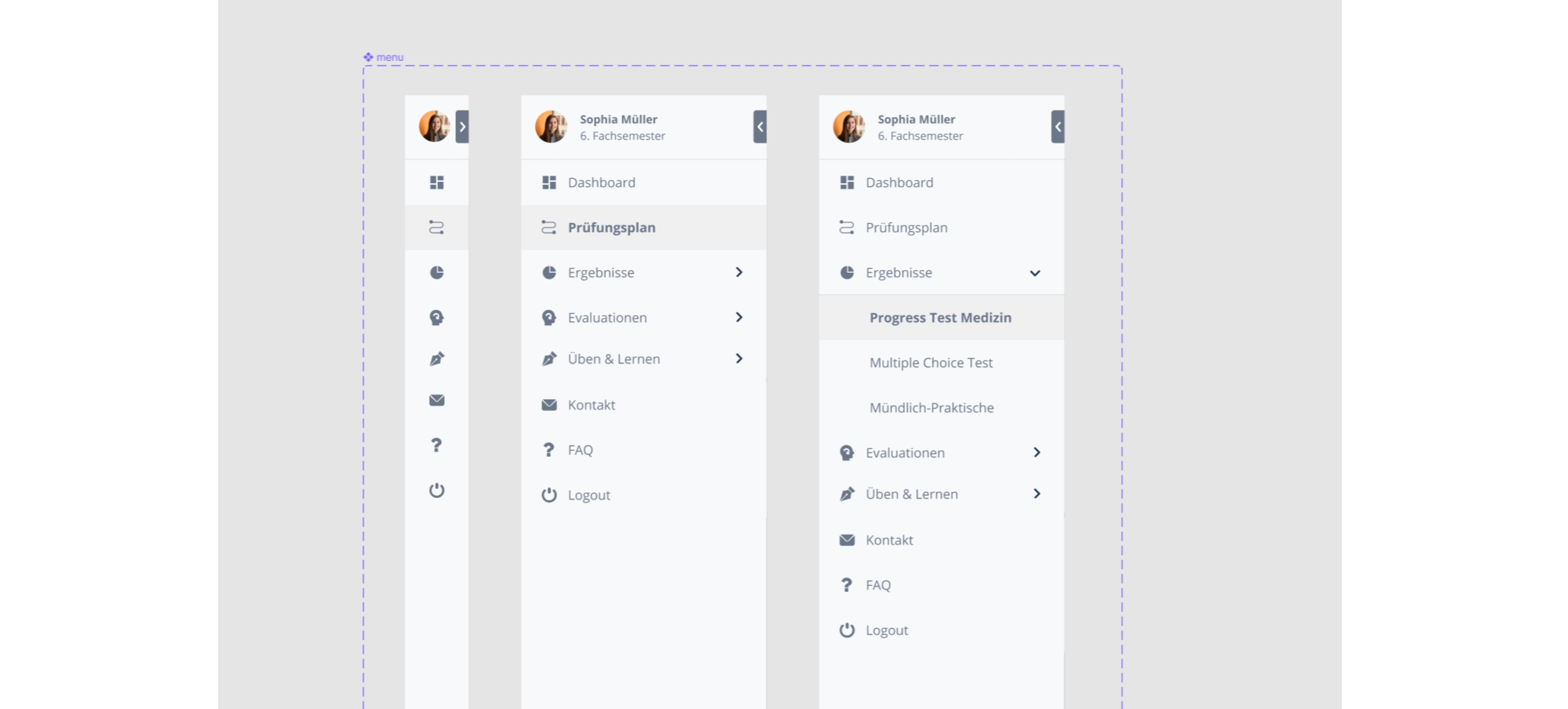 Design iterations of the Progress Test Medizin dashboard:
