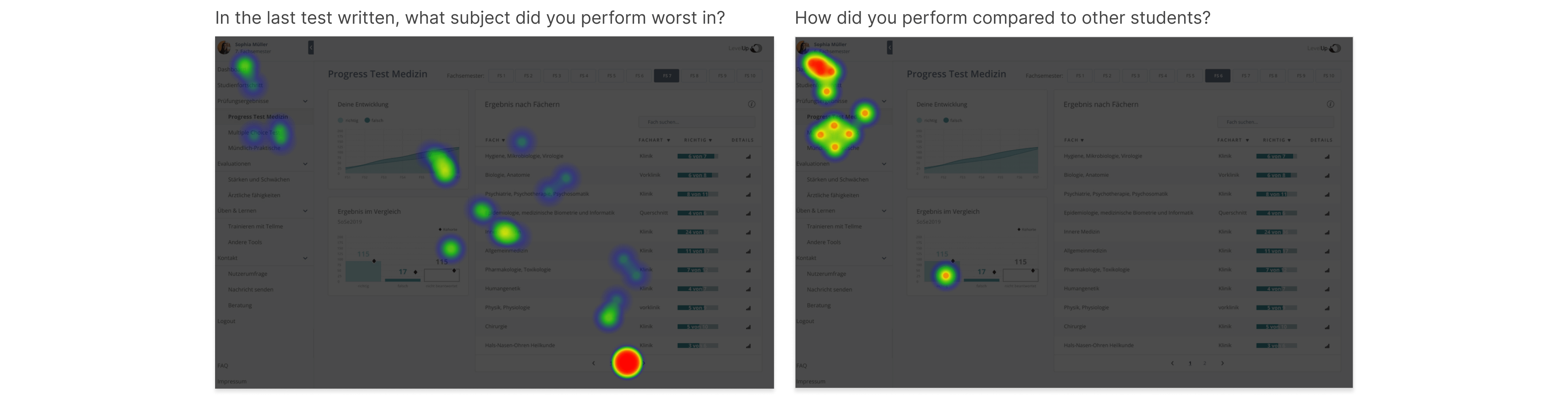 After building a prototype with the new UI solutions in different iterations I set up a click test in order to measure the success of finding information on the dashboards and evaluate how easy the students think it was to find this information.