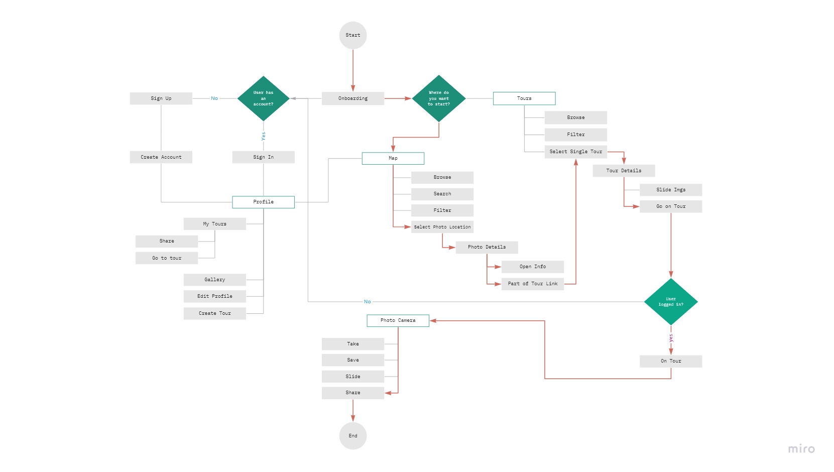 User Flow Diagramm - "New user going on a tour"